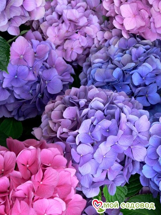 Удобряют саженцы гортензии в последних числах мая. Это необходимо для обильного и длительного цветения. В этом отношении хорошо себя зарекомендовал раствор навозной жижи в пропорции 1:10. Положительный результат обеспечивают комплексные минеральные составы: по 10 г аммиачной и калийной селитры, плюс 20 г суперфосфата (на ведро воды). Повторную подкормку вносят спустя месяц – это поспособствует закладке цветочных почек на предстоящий год. Осенью под кустами гортензии рассыпают торф или перегной.
