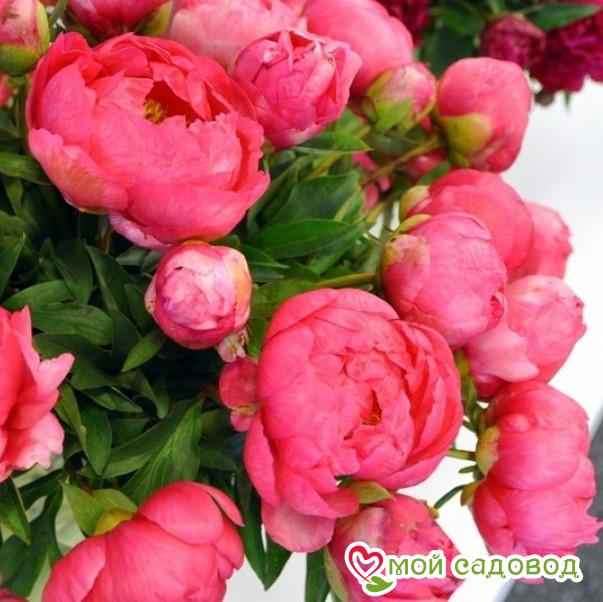 Мощный, но компактный, куст высотой 65-70 см состоит из толстых прямых побегов, отличающихся светлой окраской и способностью держать массу цветков без опоры. Травянистый кустарник покрыт светло-зелеными среднеразмерными перистыми листьями, характеризуется высокой устойчивостью к болезням и вредителям, неприхотливостью в уходе, высокой декоративностью и длительностью удержания цветков в срезке. Полумахровые крупные (до 16 см в диаметре) 3-5-рядные чашевидные цветки имеют основной коралловый оттенок, однако интенсивность цвета может достигать в определенных условиях почти малиновых оттенков. Сердцевина бутона состоит из пучка коротких ярко-желтых тычинок и зеленого пестика, наружные крупные лепестки имеют лотосовидное расположение и ровную структуру. Пион обладает сильным приятным ароматом с нотками меда и фруктов, а также цитрусовым послевкусием. Место посадки Для посадки пионов понадобится защищенное от ветров место с хорошей освещенностью. Сорта светлой окраски, а также пионы с простыми и полумахровыми цветками можно посадить на частично затеняемом участке, это продлит цветение и защитит цветы от выгорания. Почва для посадки Залог успешного цветения пиона в будущем — это подготовка почвы! 1. Подготовка ямы — 70*70 см на скудных песчанистых и торфянистых почвах — 50*50 см на плодородных, окультуренных почвах. ХРАНЕНИЕ ДО ПОСАДКИ: После получения посылки, рекомендуем вскрыть пакет и осмотреть корневище. Почки должны быть плотные и розового цвета. Так же уделите внимание самому корневищу, все сомнительные, потемневшие, сморщенные части удалите, а места среза обработайте зеленкой или залой. Если почки еще не тронулись в рост, а высаживать в открытый почву рано, советуем Вам хранить корневище в холодильнике, обязательно оставляя его в пакете с торфяной смесью или в коробке под снегом. Если почки успели раскрыться это не критично, сохранить до посадки их так же возможно, высадите корень пиона в большой просторный горшок или в любую другую ёмкость.