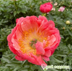 Основные характеристики сорта “Сердце Афродиты”: Высота растения: древовидный пион «Сердце Афродиты» достигает в высоту 1,5-2 метра, что делает его эффектным и выразительным элементом любого ландшафта. Он формирует красивый раскидистый куст, который со временем превращается в настоящее деревце. Размер цветка: цветки «Сердца Афродиты» очень крупные, в полном расцвете их диаметр достигает 20-25 см. Они имеют полумахровую или махровую форму с множеством лепестков, которые создают впечатление пышности и объёма. Цвет: Главная особенность этого пиона — его уникальный цвет. Лепестки имеют глубокий чёрный оттенок, который при определённом освещении кажется почти бархатным. Сердцевина цветка ярко-красная, создавая эффектный контраст и придавая цветку чувственности и страсти. Зимостойкость: древовидный пион «Сердце Афродиты» обладает хорошей зимостойкостью и способен переносить морозы до -25°C. В регионах с суровыми зимами рекомендуется дополнительное укрытие на зимний период. Прочие характеристики: «Сердце Афродиты» отличается ранним сроком цветения, что позволяет наслаждаться его красотой уже в начале весны. Он имеет крепкие, устойчивые побеги и не требует подвязки. «Мой Садовод» — ваш надёжный проводник в мир прекрасных растений: Интернет-магазин «Мой Садовод» — это результат нашей многолетней любви к садоводству и стремления предложить нашим клиентам только лучшие саженцы. Мы более 10 лет успешно работаем на рынке, имея собственный питомник и сотрудничая с проверенными поставщиками. Мы ценим доверие наших покупателей и стремимся к постоянному совершенствованию, предлагая качественный посадочный материал и отличный сервис. Преимущества покупки саженцев древовидного пиона «Сердце Афродиты» именно у нас: Высокое качество: Мы предлагаем только здоровые и сильные саженцы, выращенные с заботой и вниманием к деталям. Каждое растение проходит строгий контроль качества перед отправкой. Сортовое соответствие: Мы гарантируем, что вы получите именно сорт “Сердце Афродиты”, а не другой похожий пион. Все наши саженцы имеют необходимые сертификаты, подтверждающие их сортовую принадлежность. Быстрая доставка: Мы осуществляем быструю и надежную доставку по всей России, в том числе почтой. Ваш заказ будет доставлен в кратчайшие сроки, чтобы вы могли как можно скорее посадить свой пион. Бережная упаковка: мы используем специальную упаковку, которая защищает саженцы от повреждений во время транспортировки, гарантируя их сохранность и целостность. Выгодные цены: мы предлагаем одни из самых недорогих цен на рынке, делая качественные саженцы доступными для каждого садовода. У нас вы можете купить древовидный пион “Сердце Афродиты” по привлекательной цене. Немного истории о пионе древовидном “Сердце Афродиты”: Древовидный пион «Сердце Афродиты» — это сорт, выведенный селекционерами, вдохновлёнными красотой и грацией богини любви Афродиты. Они стремились создать цветок, который олицетворял бы страсть, чувственность и в то же время загадочность и величие. Этот сорт быстро завоевал сердца садоводов по всему миру благодаря своей неповторимой красоте и неприхотливости. Особенности посадки и ухода за древовидным пионом «Сердце Афродиты»: Выбор места: древовидные пионы предпочитают солнечные места с плодородной и хорошо дренир